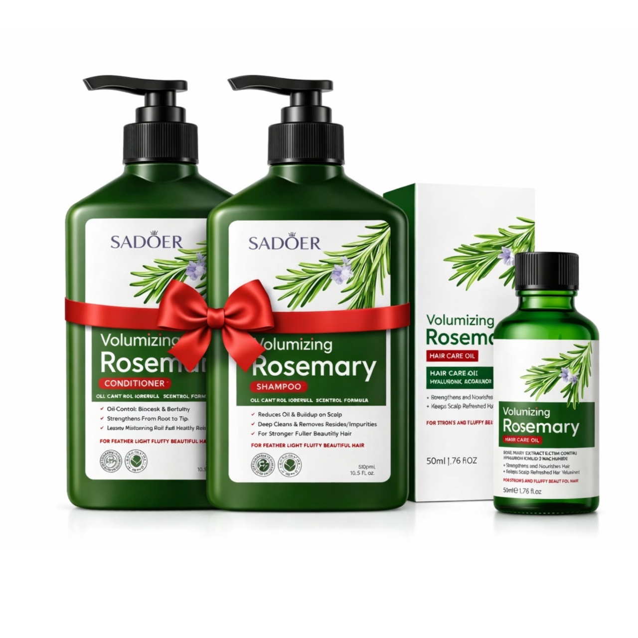 Pachet Complet SADOER – Șampon + Balsam + Ulei cu Rozmarin (Volum & Revitalizare)
