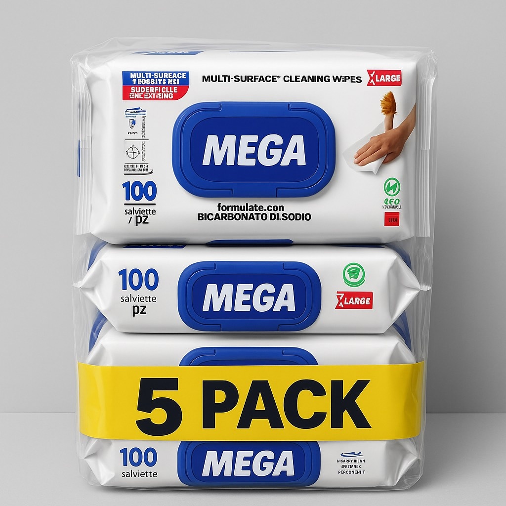 Set 5 cadou Servetele umede multisuprafete cu Bicarbonat si otet, MEGA